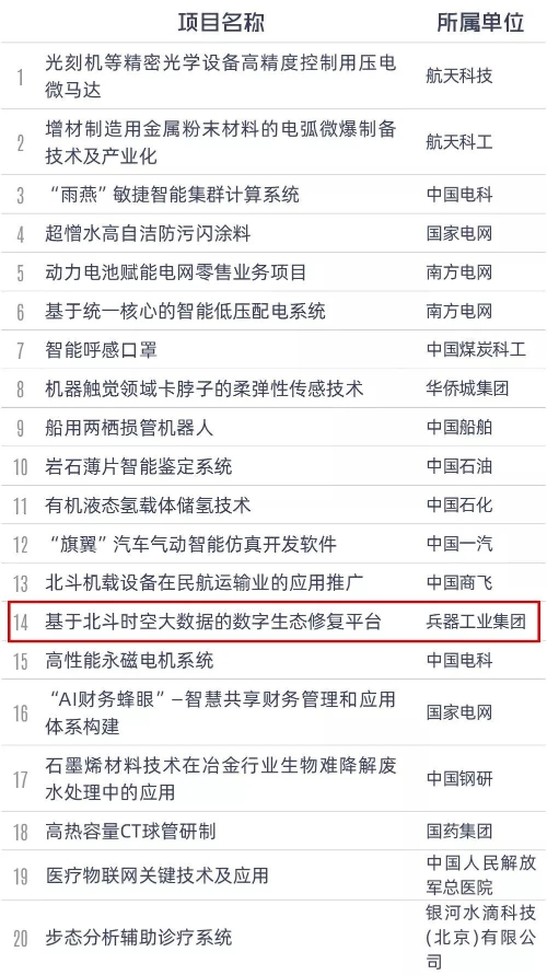 為落實黨中央、國務院關于加快實施創新驅動發展戰略、深入推進大眾創業萬眾創新的決策部署,加快推動中央企業創新創業高質量發展,國資委于2020年9月組織開展了第三屆中央企業熠星創新創意大賽。 大賽啟動以來,各中央企業積極組織參加,社會創新團體踴躍參與,共3340個項目、2.3萬余人報名參賽。通過項目初選和復選,共有516個項目面向社會進行了投資路演和對接,吸引眾多投資機構和知名企業參與,達成一批合作意向。 經總決賽評選,共評選出一等獎20項、二等獎30項、三等獎50項、優秀獎100項,中國兵器工業集團有限公司4個項目獲獎并榮獲“優秀組織單位”。 兵器工業集團獲獎項目 一等獎(1個) 基于北斗時空大數據的數字生態修復平臺(創意類) 三等獎(1個) 三合一北斗智能邊海防管控終端(創新類) 優秀獎(2個) 基于北斗的鐵路工程測量創新應用(創意類) 公共交通一體化智慧監測系統(創新類) 完整獲獎名單  |