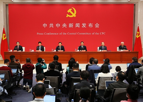 10月30日,中共中央在北京舉行新聞發布會,介紹黨的十九屆五中全會精神,并答記者問。 新華社記者 李鑫 攝 10月30日,中共中央在北京舉行新聞發布會,介紹黨的十九屆五中全會...